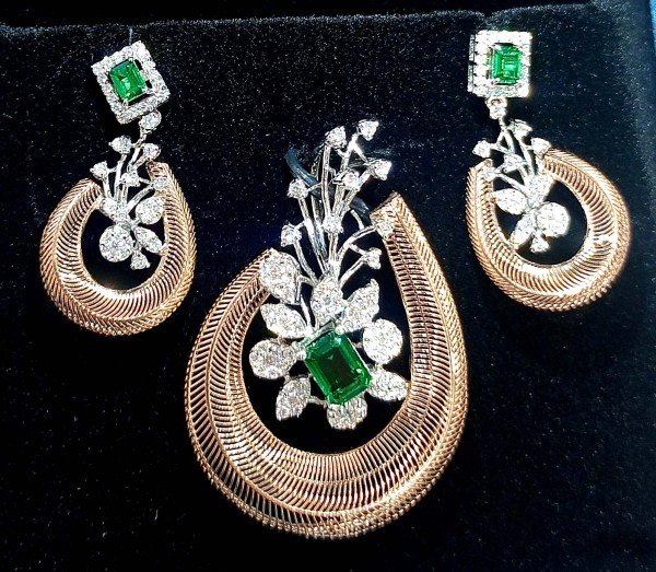 One Pendent Set weighing in total 12.15 gms, studded with 156 Diamonds.