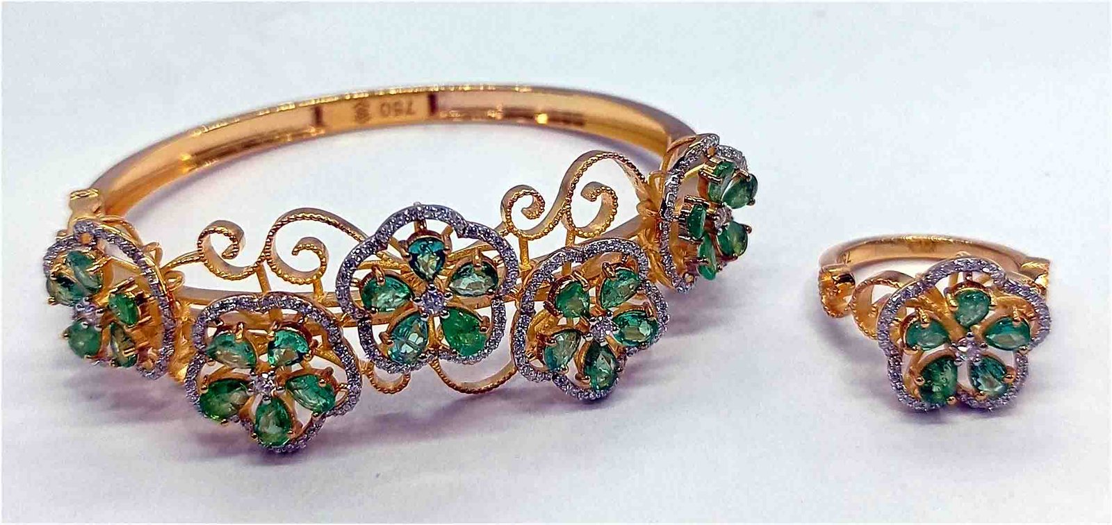 One Bracelet+Ring weighing in total 22.46 gms, studded with 240 Pcs Diamonds.